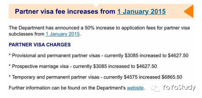 移民局今早刚刚发出通知,配偶签证的申请费将于2015年1月1日上调。