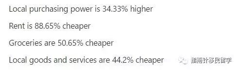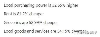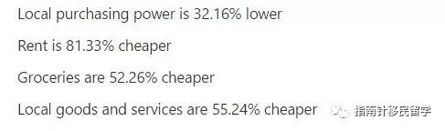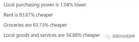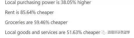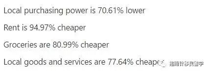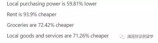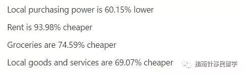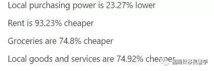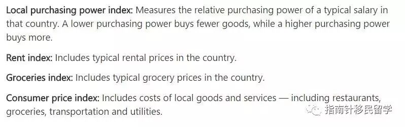 这个榜单是从以下几个方面来评价的:当地购买力指数,房租指数,生活费,消费者物价指数。